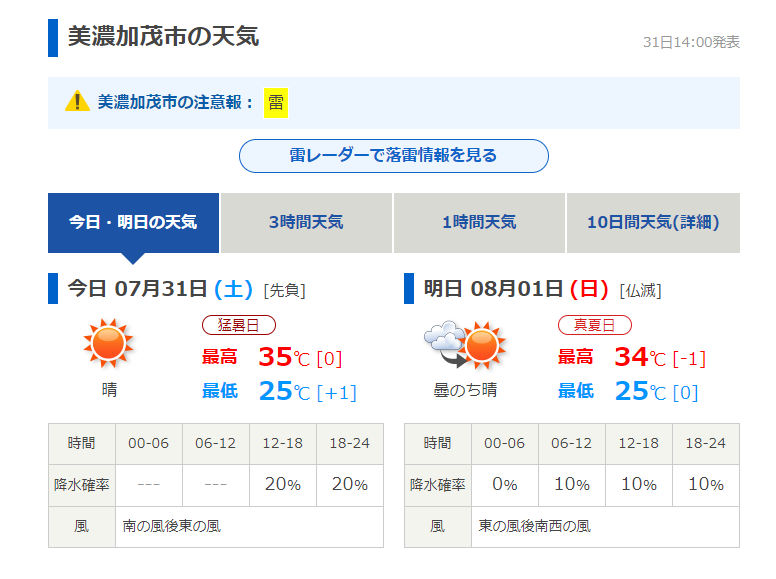 この日の美濃加茂市の最高気温は35度(湿度59%)でした